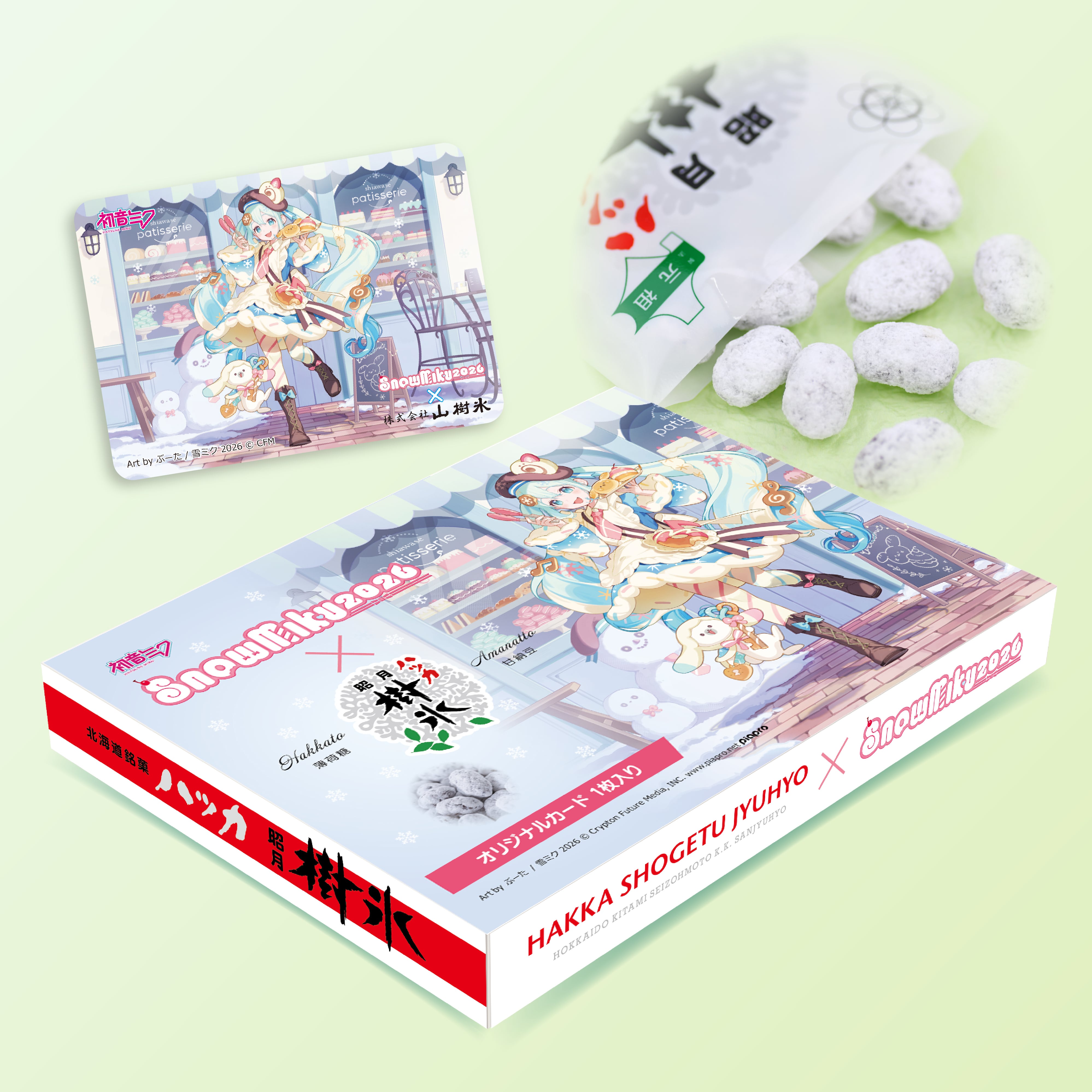 北海道の雪のような爽やかなハッカの甘納豆『ハッカ樹氷』と北海道の応援キャラクター『雪ミク』を是非お楽しみください!